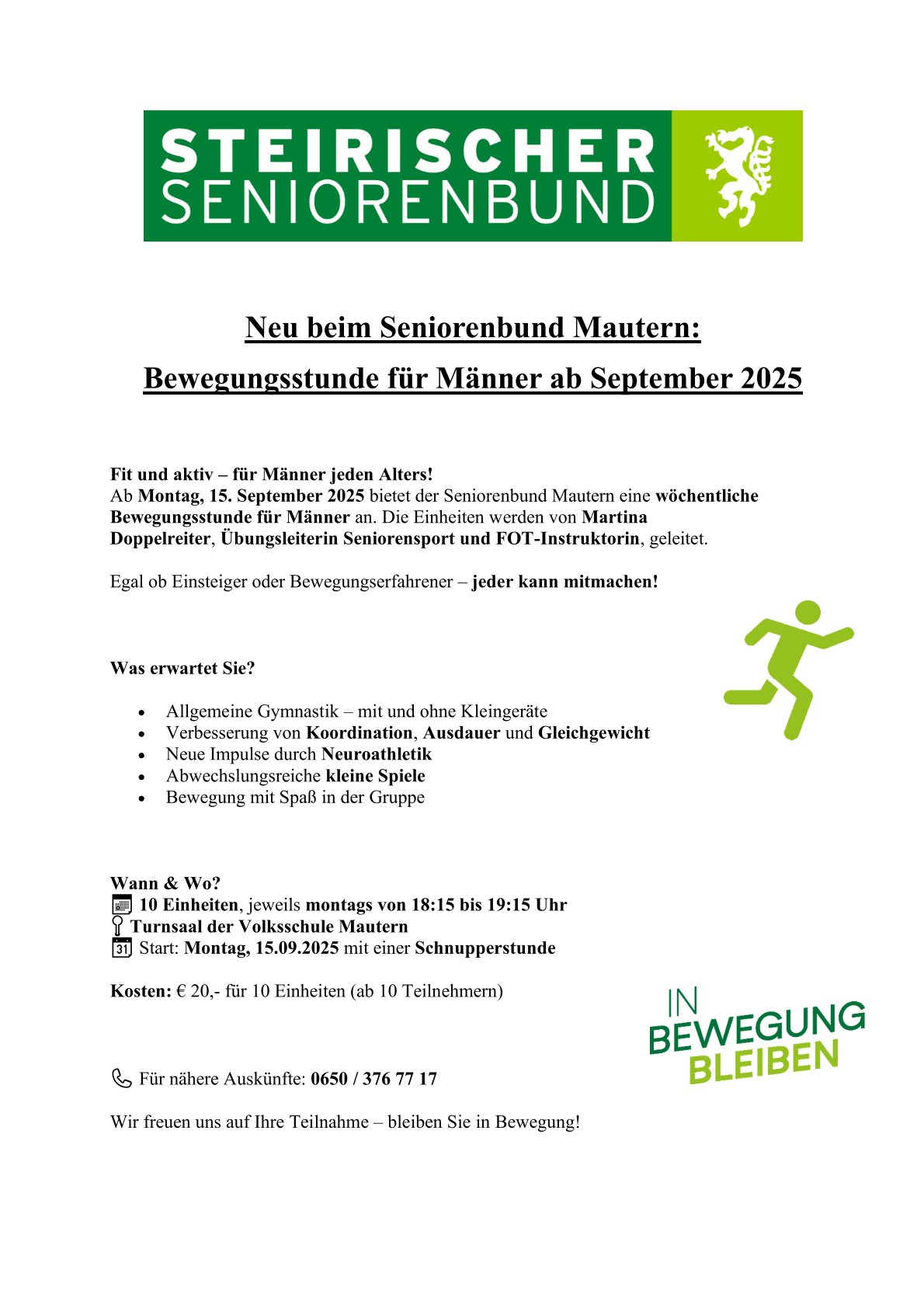 Seniorenbund Mautern: Bewegungsstunde für Männer