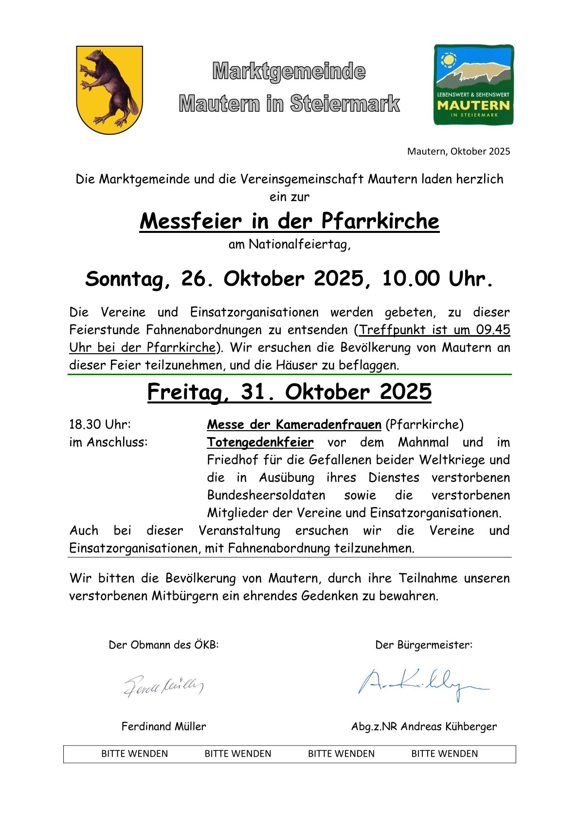 RÖM.-KATH. PFARRE: NATIONALFEIERTAG, MAUTERNER VEREINSTAG, HL. MESSE