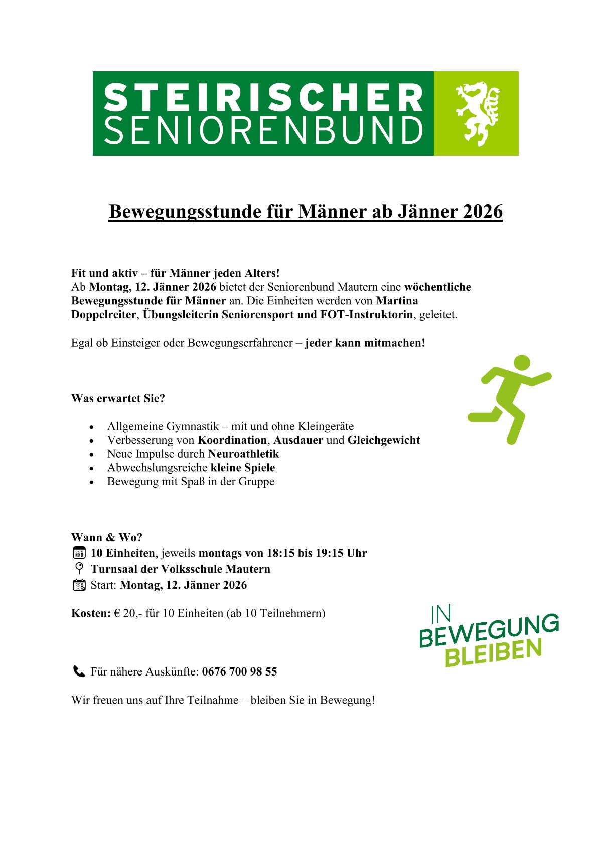 STEIRISCHER SENIORENBUND MAUTERN: BEWEGUNGSSTUNDE FÜR MÄNNER